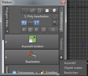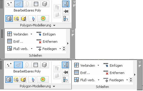 Neben den Modellierungshilfsmitteln, die über Gruppenschaltflächen und andere Steuerelemente bereitgestellt werden, bietet die Multifunktionsleiste Funktionen zur Verwaltung der Benutzeroberfläche in Form von Schaltflächen und eines Kontextmenüs.