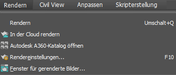 Im Menü Rendern haben die Rendereinstellungen ein Symbol, eine Ellipse, und einen Tastaturbefehl.