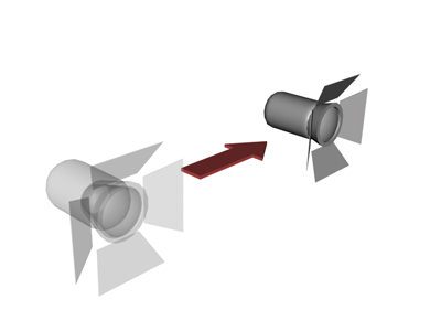 Bei einem Ziellicht werden sowohl die Lichtquelle als auch ihr Ziel parallel zur Ansichtsebene verschoben, die sich senkrecht zu der Linie befindet, an der die Lichtquelle ausgerichtet ist.