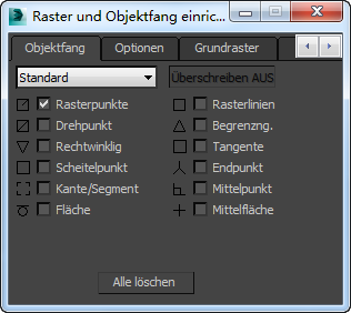 Mit der Standardobjektfang-Funktion können Sie den Objektfang für Netz- und Konturobjekte und zum aktiven Raster verwenden.