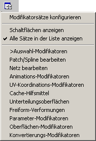 Der untere Bereich der Menülisten für Modifikatorsätze führt die Namen der gespeicherten Modifikatorsätze auf. Wählen Sie einen dieser Sätze aus, um ihn zum aktuellen Satz zu machen, der als Schaltflächen angezeigt wird, wenn die Option "Schaltflächen anzeigen" aktiviert ist.