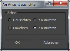 Bestimmt, welche lokale Achse des ausgewählten Objekts an der Z-Achse des aktuellen Ansichtsfensters ausgerichtet wird.