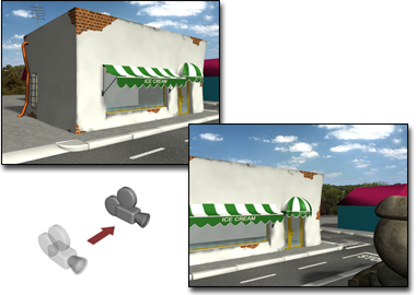 Bei einer Zielkamera verschiebt das Ziehen mit der Maus die Kamera und das Ziel parallel zur Kameraansicht.