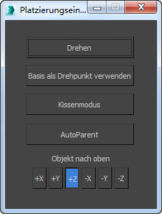 Das Dialogfeld "Platzierungseinstellungen" bietet Steuerelemente zum Ändern der Objektbewegung mit "Auswählen und platzieren". Um das Dialogfeld zu öffnen, klicken Sie mit der rechten Maustaste im Hauptwerkzeugkasten auf die Schaltfläche Auswählen und platzieren.