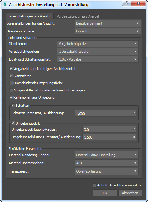 - Wenn diese Option aktiviert ist, werden die aktuell ausgewählten Einstellungen beim Klicken auf OK auf alle sichtbaren Ansichtsfenster angewendet.