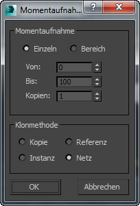 Von 3ds Max wird das Dialogfeld Momentaufnahme geöffnet.