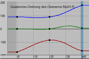 Anmerkung: Wenn Sie eine Kurve von "Euler" auf "Quaternion" umstellen, kann dies sich auf ihre Interpolation auswirken. Genauere Informationen hierzu finden Sie unter "Arbeiten mit Euler-Kurven bei Biped-Animationen".