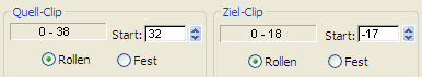 Mit "Rollen" und "Fest" legen Sie fest, ob sich ein Clip am Übergang in Bewegung befindet (Rollen) oder ob von ihm nur ein Einzel-Frame angezeigt wird (Fest). Im Feld "Winkel" können Sie die Richtung des Ziel-Clips ändern.
