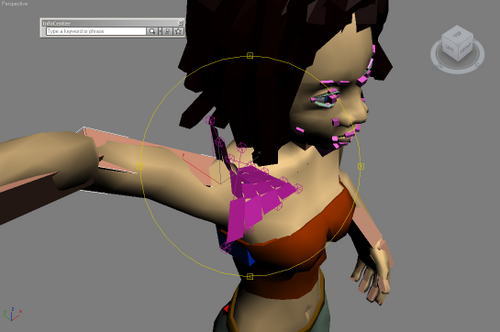 Beispiel: Die folgende Abbildung zeigt, wie Schulter und Oberarm des Marama-Rigs bloßgelegt wurden, nachdem sie in verschiedene Richtungen gedreht und gezogen wurden. (Marama ist eines der Standard-CAT-Rigs, die in CAT enthalten sind.)