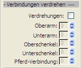 - Legt die Anzahl der Verdrehungsverbindungen in den Oberarmen fest. Vorgabe = 0. Bereich = 0 bis 10.
