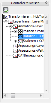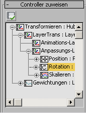 Mit allen grundlegenden Layertypen (Abs, +L, +W) können Sie beliebigen Bones neue Controller zuweisen, um das Verhalten der Bones oder die Interpolation der Keyframes zu ändern.