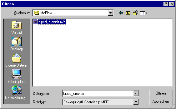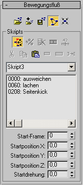 Skripts, Übergänge und Clip-Referenzen werden in einer Bewegungsfluss-Editordatei (MFE) für die spätere Bearbeitung gespeichert. In diesem Format können Sie einen Bewegungsfluss und ein Skript aus einem Biped generieren und zur späteren Bearbeitung in ein anderes Biped laden.
