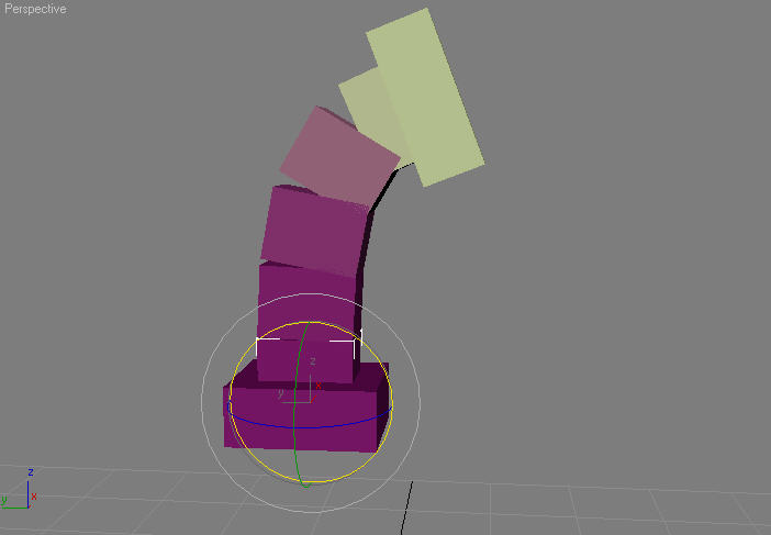 Wenn Sie den Spitzen-Hub einer relativen Wirbelsäule drehen, bewegt sich der Hub auf einem Bogen um die Basis der Wirbelsäule.