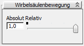 Wenn Sie einen Bone in einer prozeduralen Wirbelsäule auswählen und zur Bewegungsgruppe wechseln, finden Sie dort ein kleines Rollout namens "Wirbelsäulenbewegung". Auf diesem Rollout gibt es nur einen Schieberegler, der bestimmt, ob sich die Wirbelsäule relativ oder absolut verhält.