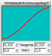 Sie können den Spline durch Anpassung der Einstellungen für "Tangente" und "Wert" am unteren Rand des Rollouts bearbeiten.