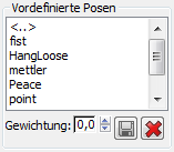 Zum Gewichten einer Voreinstellung wählen Sie die Handfläche aus, klicken zum Markieren einmal auf die vordefinierte Stellung in der Liste und erhöhen dann den Wert für "Gewichtung".