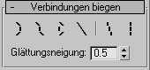 Im Modus "Verbindungen verdrehen" im Rollout "Verbindungen biegen" können Sie mehrere Verbindungen entlang der X-Achse verdrehen, während ihre Position relativ zu den beiden anderen Achsen erhalten bleibt. Die Kombination beider Modi eröffnet weitere Möglichkeiten der Steuerung von Wirbelsäule, Hals oder Schwanz.