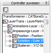 - Öffnen Sie das Rollout "Controller zuweisen" und markieren die Rotationsspur des aktuellen Animationslayers.