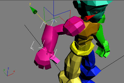 Wenn Sie den Bone eines CAT-Rigs in der Hierarchie verschieben (egal ob in IK oder VK), drehen sich die Bones auf beiden Seiten entsprechend. Dadurch wird eine schnelle und intuitive Bearbeitung des Rigs ermöglicht. Dieses System wird "Effekthierarchie" genannt. Es folgen drei Beispiele dazu.