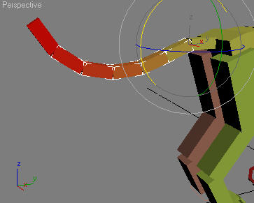 Die Form der Wirbelsäule zwischen den Hubs an den beiden Enden wird interpoliert – Sie müssen daher lediglich die Hubs wie gewünscht transformieren.