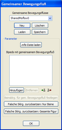 Solche Dateien werden mit dem Befehl "Speichern" erstellt (siehe folgende Option). Die Datei enthält neben dem gemeinsamen Bewegungsflussdiagramm auch die Skripts für alle Bipeds, von denen der Bewegungsfluss gemeinsam verwendet wird.