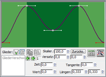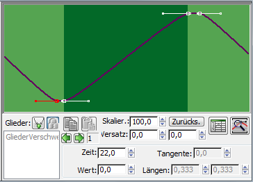 Der Controller "Finger-Spreizwinkel" steuert, wie weit die Zehen während des Zyklus gespreizt werden.