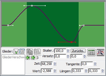 Tipp: Zur Steuerung der Krümmungswerte einzelner Zehen bearbeiten Sie unter den Einrichtungsparametern des ausgewählten Zehs den Wert