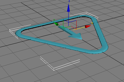 Jedes CAT-Rig verfügt über ein CAT-Parent. Das CAT-Parent – das Symbol mit dem Pfeil im Dreieck, das bei der Erstellung unterhalb jedes Rigs angezeigt wird – kann als der Figurknoten des Rigs angesehen werden.