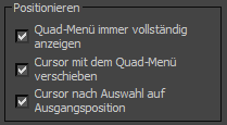 - Damit können Sie auswählen, in welchem Quadranten sich der Cursor beim Öffnen des Quad-Menüs befindet.