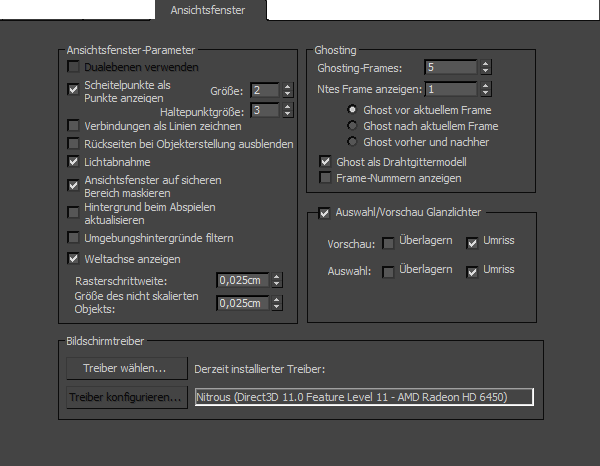 (Nicht verfügbar für das Nitrous-Ansichtsfenster: Alle Nitrous-Einstellungen sind im Dialogfeld Ansichtsfenster konfigurieren enthalten.)