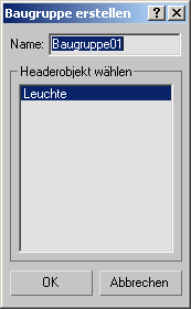 Mit dem Befehl "Baugruppe erstellen" fassen Sie einen Auswahlsatz von Objekten, Baugruppen und/oder Gruppen zu einer einzigen Baugruppe zusammen und fügen ihr ein Leuchten-Helferobjekt als Headerobjekt hinzu.