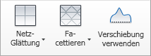 Die Gruppe "Unterteilung" bietet Hilfsmittel für das Erhöhen der Netzauflösung mithilfe von Parametern für die Glättung, Verschiebung und Facettierung. Sie steht auf der Objektebene und allen Unterobjektebenen zur Verfügung.