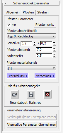 - Wenn diese Option aktiviert ist, verwendet die Schiene die Pfosten-Geometrie. Wenn diese Option deaktiviert ist, hat die Schiene keine Pfosten.