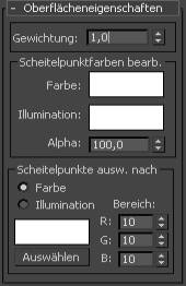 Mit diesen Steuerelementen können Sie die Farb-, Illuminationsfarb- (Schattierung) und Alpha-Werte (Transparenz) von ausgewählten Scheitelpunkten zuweisen.