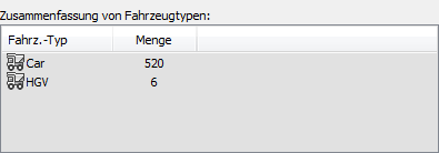 Listet die Fahrzeugtypen aus der ausgewählten FZP-Datei sowie die Gesamtzahl der Fahrzeuge in jeder Fahrzeugtypkategorie auf
