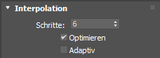 Ist das Kontrollkästchen markiert, wird die Zahl der Schritte für jeden Spline automatisch so eingestellt, dass eine glatte Kurve entsteht. Gerade Segmente besitzen immer 0 Schritte. Ist das Kontrollkästchen jedoch nicht markiert, wird die Interpolation mit den Optionen "Optimieren" und "Schritte" manuell bestimmt. Vorgabe = Deaktiviert.