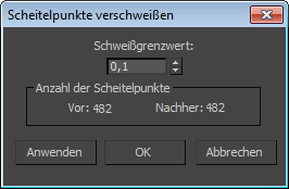 Verwenden Sie dieses Dialogfeld, um den Schweißgrenzwert für Scheitelpunkte und Kanten festzulegen und die Anzahl der Unterobjekte, die verschweißt werden, im Voraus anzuzeigen.
