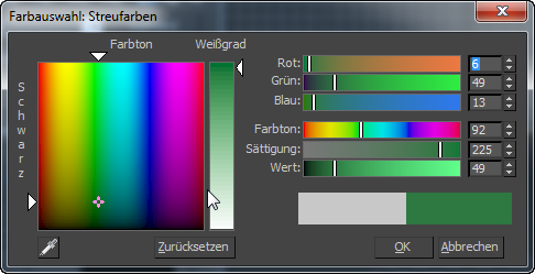Mit den Zahlenauswahlfeldern rechts neben den Schiebereglern können ebenfalls die Komponenten "Rot", "Grün" oder "Blau" eingestellt werden.
