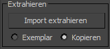Wenn "Kopie" gewählt ist (Vorgabe), ist das extrahierte Objekt eine Kopie des importierten Objekts auf der oberen Ebene. Wenn "Instanz" aktiviert ist, ist das extrahierte Objekt eine Instanz des importierten Objekts. Anfangs nimmt das extrahierte Objekt den gleichen Platz wie das importierte Objekt ein. Das extrahierte Objekt wird nur sichtbar, wenn Sie entweder dieses, das importierte Unterobjekt oder das gesamte NURBS-Modell verschieben.