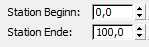 - Ein guter Trick zum schnellen Platzieren von Markierungen über einen kurzen Abschnitt der Referenzkontur ist, die Startmarkierung zuerst zu positionieren und dann mit der rechten Maustaste auf die Pfeile des Zahlenauswahlfelds Endmarkierung zu klicken, um die Endmarkierung direkt vor die Startmarkierung zu bringen. Dann müssen Sie nur noch die Endmarkierung ein wenig verschieben, um sie an die gewünschte Position zu bringen.