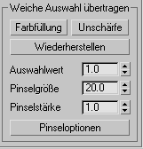 Das Ausmaß, um das die gemalten Unterobjekte durch das Malen einer weichen Auswahl auf den maximalen Wert gesetzt werden. Mit einem hohen Wert für "Stärke" wird der Höchstwert schnell erreicht, während bei einem niedrigen Wert der Höchstwert erst durch wiederholtes Anwenden erzielt wird.
