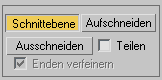 Führt einen Schnitt an der Position der Schnittebene durch. Die Schaltfläche "Aufschneiden" ist nur dann verfügbar, wenn die Schaltfläche "Schnittebene" hervorgehoben ist. Mit diesem Hilfsmittel wird das Netz genauso aufgeschnitten wie mit dem Modifikator "Schnitt" im Modus "Einwirken auf: Fläche".