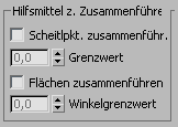 Winkelgrenzwert Legt den Winkel zwischen Flächennormalen fest, in denen Flächen zusammengeführt werden. Bereich = 0,0 bis 10,0. Vorgabe = 0,0.