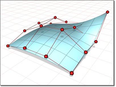 Kontrollscheitelpunkte im Gitter um eine NURBS-Oberfläche