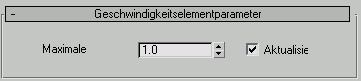 - Aktivieren Sie dieses Kontrollkästchen, wenn Sie Test-Frames rendern. Nach dem Rendern wird unter "Maximale Geschwindigkeit" der durch den Aktualisierungsvorgang erhaltene Wert festgelegt. Verwenden Sie dabei den höchsten dieser Werte, und deaktivieren Sie anschließend das Kontrollkästchen "Aktualisieren", bevor Sie eine vollständige Animation rendern. Vorgabe = Deaktiviert.