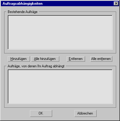 Fügt alle Aufträge aus der Liste "Bestehende Aufträge" der Liste "Aufträge, von denen Ihr Auftrag abhängt" hinzu.