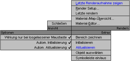 Die Initialisierung kann in komplexen Szenen geraume Zeit in Anspruch nehmen. Um Zeit zu sparen, können Sie "Automatische Neuinitialisierung" deaktivieren oder die Initialisierungs- und Schattierungs-Aktualisierungen mit "Bereich zeichnen" auf einen Teilbereich der Szene beschränken.