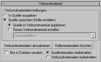 - Quelle speichern (Hülle erstellen) Erstellt ein neues Hüllenmaterial und weist es dem Objekt zu. Wenn diese Option ausgewählt ist, können Sie entweder Quelle in Einbackmaterial duplizieren oder Neues Einbackmaterial erstellen wählen.