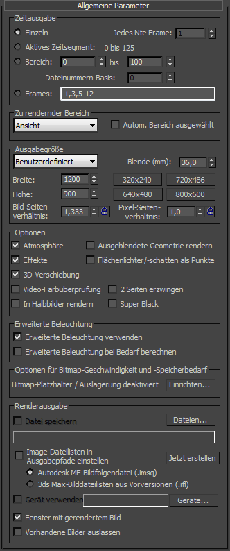 Im Rollout "Allgemeine Parameter" stellen Sie Parameter ein, die für alle Renderer gelten.