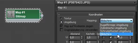 3. Verwenden Sie den Material-Editor, um den Mapping-Typ des Maps in "Bildschirm" zu ändern.